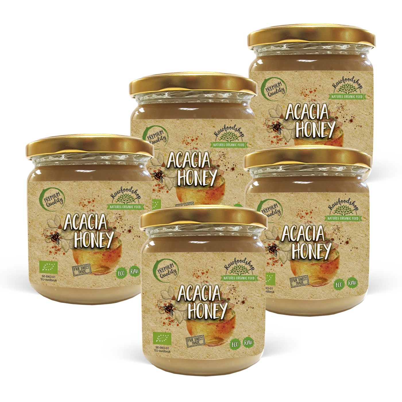 Sisältää 5 purkkia: Akaasiahunaja LUOMU 500g