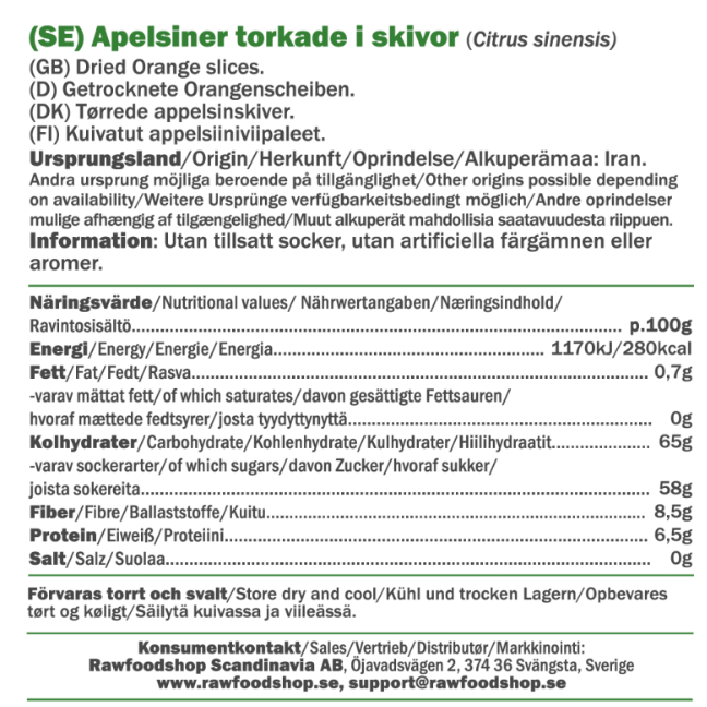 Rawfoodshopin kuivatut appelsiinit ovat puhtaita viipaleita auringon kypsyttämistä appelsiineista – ilman lisättyä sokeria, väri- tai säilöntäaineita. Jokainen hedelmä poimitaan täydellisen kypsänä, viipaloidaan hellästi ja kuivataan hitaasti, jotta sen luonnollinen luonne ja kevyt katkeruus säilyvät – ominaisuudet, jotka tekevät appelsiinista niin ainutlaatuisen. Kuivatussa appelsiinissa kohtaavat makeus ja raikas hapokkuus – täydellinen leivontaan, koristeeksi ja juomiin. Useita kiloja tuoreita hedelmiä tarvitaan yhteen pussiin näitä kultaisia viipaleita – tuloksena on voimakas makuelämys, joka tekee jokaisesta hetkestä erityisen.