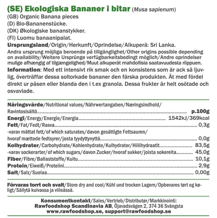 Aurinkokuivatut banaanimme paloina, pakattuna kätevään 200 g pussiin, tarjoavat todellisen makuelämyksen. Nämä kuivatut banaanit eivät ole ainoastaan ekologisia ja vegaanisia, vaan ne on myös huolellisesti aurinkokuivattu säilyttämään intensiivinen, rikas maku ja pehmeä koostumus. Täydellisiä nautittavaksi suoraan pussista tai sekoitettavaksi suosikkigranolasi joukkoon, kun haluat nauttia hieman enemmän.
