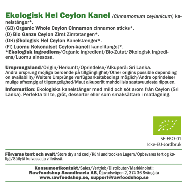 Aito Ceylon-kaneli, joka tunnetaan myös nimellä Cinnamomum Zeylanicum, on peräisin Sri Lankasta ja erottuu muista kanelityypeistä miedolla ja aromaattisella maullaan. Luomu Ceylon-kanelitangomme ovat korkealaatuisia ja tuovat lämpimän ja tasapainoisen maun niin kuumiin juomiin, patoihin kuin leivonnaisiinkin. Kanelitangot vapauttavat arominsa hitaasti ja luovat miellyttävän tuoksun ruoanlaiton aikana.