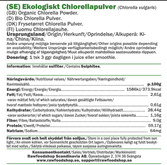 Chlorella on yksisoluinen mikrolevä, joka viihtyy makeassa vedessä ja on tunnettu syvän vihreästä väristään korkean klorofyllipitoisuuden ansiosta. Rawfoodshop tarjoaa korkealaatuista luomu chlorella-jauhetta, joka on huolella valittu osaksi päivittäistä ruokavaliotasi. Sen ainutlaatuinen maku ja väri tekevät siitä mielenkiintoisen lisän keittiöön – täydellinen niille, jotka haluavat kokeilla uusia makuelämyksiä.