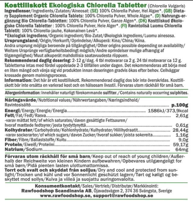 Chlorella on yksisoluinen makean veden levä, ja näissä luomulaatuisissa chlorella-tableteissa käytetään Chlorella vulgaris -levää. Levämme kasvatetaan puhtaissa oloissa keinotekoisessa vesialtaassa pienellä saarella Etelä-Kiinan merellä – kaukana mantereen saasteista. Vesi tulee syvistä maanalaisista lähteistä, mikä takaa puhtaan kasvuympäristön ilman kaupungin epäpuhtauksia. Tabletit sisältävät 100 % luomuchlorellajauhetta, eivätkä ne sisällä mitään lisäaineita tai sidosaineita. Täydellinen valinta osaksi kestävää ja luonnonmukaista elämäntapaa.