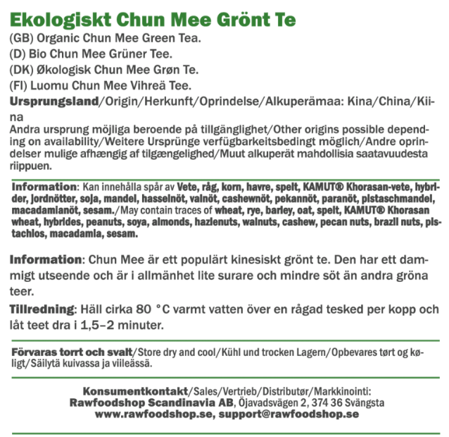 Chun Mee Tee LUOMU on perinteinen kiinalainen vihreä tee, jota arvostetaan ympäri maailmaa sen ainutlaatuisen maun vuoksi. Nimi, joka tarkoittaa ”arvokkaita kulmakarvoja”, viittaa kauniisti kiertyneisiin lehtiin, jotka antavat teelle sen tunnistettavan ulkonäön. Lehtien hienoinen pölyinen pinta on Chun Mee -teen tunnusmerkki, ja se tuo juomaan täyteläisen aromin, jossa on raikas hapokkuus ja hienovarainen makeus. Luomuna kasvatettu vihreä tee on erinomainen valinta sinulle, joka arvostat aitoa, puhdasta ja vivahteikasta teekokemusta. Olitpa sitten kokenut teen ystävä tai vasta tutustumassa uusiin teelaatuihin, tämä Chun Mee -luomutee sopii täydellisesti kestävän ja tietoisemman arjen kumppaniksi.