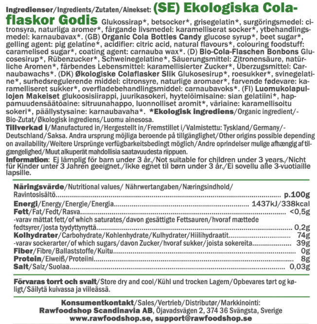 Nämä kolapullot eivät ole vain herkullisia, vaan ne on valmistettu tiukkojen luomustandardien mukaisesti. Ainekset tulevat valvotuilta luomutiloilta, jotta voit nauttia karkistasi hyvällä omallatunnolla. Klassinen colanmaku tekee niistä houkuttelevia sekä aikuisille että lapsille. Kokeile kolapullojamme, jos haluat makeisen, joka maistuu hyvältä ja on tuotettu kestävällä tavalla!