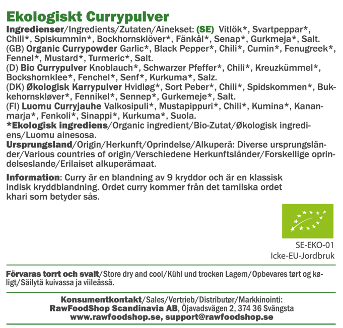 Tämä luomulaatuinen curry on aito ja huolella koottu mausteseos, joka tuo lämpöä ja täyteläistä makua ruokiisi. Se sisältää yhdeksän tarkoin valittua luomumaustetta, jotka yhdessä korostavat intialaisen keittiön parhaat puolet. Seoksen tunnusomainen keltainen väri tulee kurkumasta – yhdestä sen pääraaka-aineista – mutta jokaisella mausteella on tärkeä roolinsa tasapainoisen maun luomisessa. Curryn juuret ulottuvat tamilin sanaan kari, joka tarkoittaa kastiketta – ja juuri tällaisissa ruoissa tämä mauste todella loistaa. Olipa kyseessä täyteläinen pata, kermaisa kastike tai vegaaninen kokeilu, tämä curry tuo vaihtelua ja makua keittiöösi.