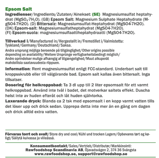 Epsom-suola, joka tunnetaan myös nimellä karvassuola, on vanha mineraali, jota on käytetty vuosisatojen ajan sen monipuolisuuden ansiosta. Se on erityisen tunnettu rentouttavasta vaikutuksestaan kylvyssä, mutta se on suosittu myös kehonhoidossa – ja jopa puutarhassa. Epsom-suolaa on saatavilla eri kokoisissa pakkauksissa, joten voit helposti mitata juuri tarvitsemasi määrän. Käytätpä sitä kotispa-hetkeen tai kasvien hoitoon, se on monikäyttöinen tuote, joka on hyvä pitää aina saatavilla.