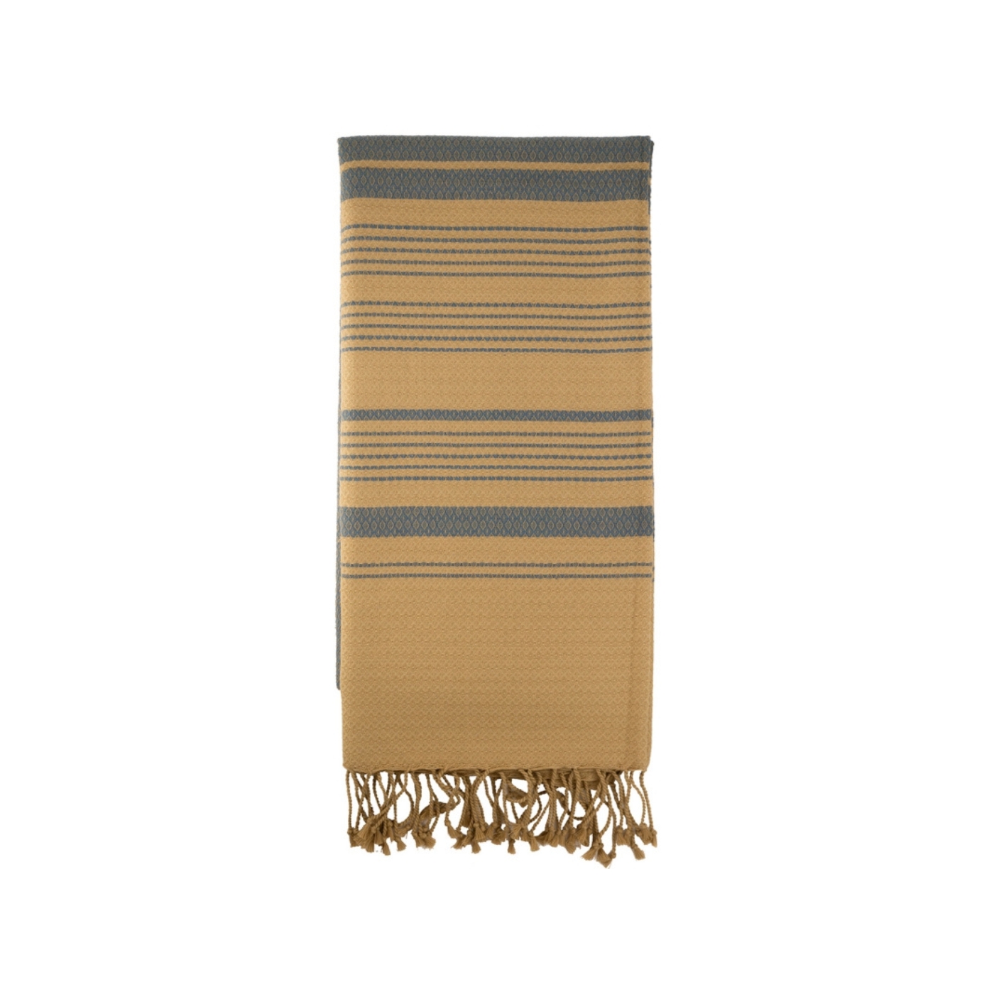 Ohuen ja kevyen muotoilunsa sekä harmonisen värimaailmansa ansiosta tämä fouta sopii yhtä hyvin kotiin kuin matkalle. Sen pehmeä materiaali on hellävarainen iholle, ja kudottu rakenne tuo ainutlaatuisen tunteen laadusta ja perinteestä. Olipa se mukana rannalla tai luonnollinen osa arkeasi, siitä tulee nopeasti korvaamaton suosikki.