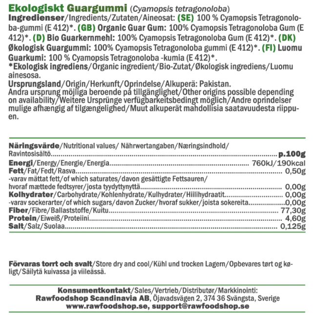 Guarkumijauhe on luonnollinen valinta sinulle, joka kaipaat gluteenittomiin resepteihin täydellistä rakennetta. Luomulaatuinen guarkumijauheemme tekee kastikkeista, smoothieista ja itse tehdyistä jäätelöistä ihanan täyteläisiä ja kermamaisia. Se turpoaa jopa 8-kertaiseksi nesteen kanssa ja sekoittuu helposti esimerkiksi sauvasekoittimella – ilman paakkuja. Guarkumijauhetta kannattaa käyttää etenkin, kun haluat vähentää jääkiteiden muodostumista kotitekoisessa jäätelössä tai saada kylmiin kastikkeisiin ja pataruokiin sileän, tasaisen koostumuksen.