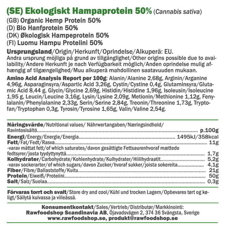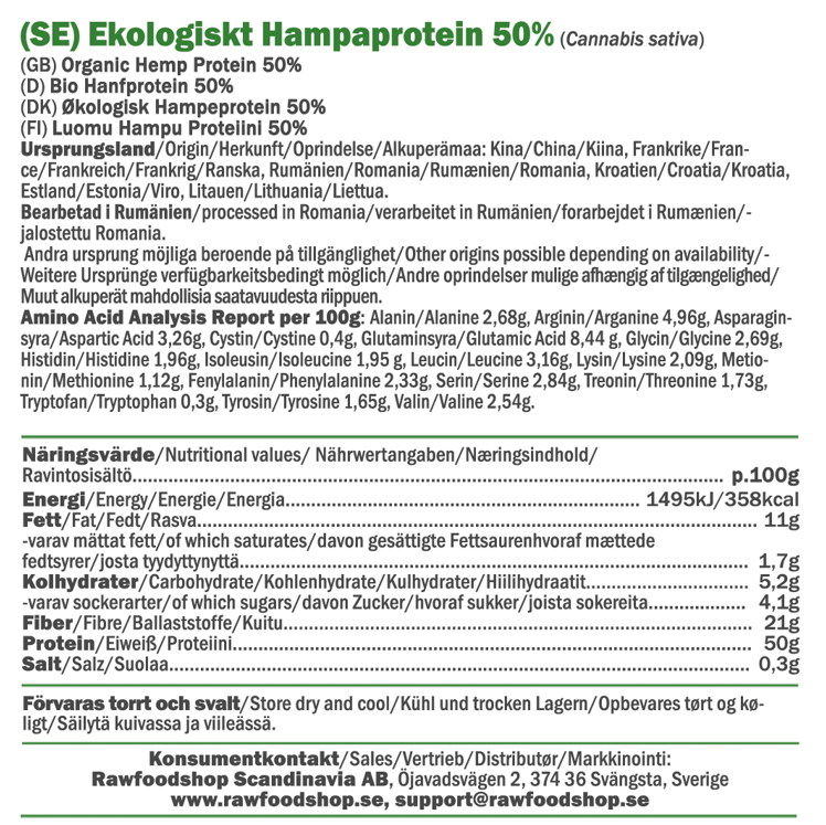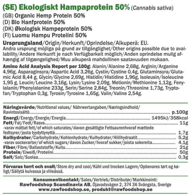 Tutustu Hamppuproteiini 50% LUOMU - vegaaniseen proteiinijauheeseen, joka on valmistettu luomu-hamppunsiemenistä. Miedon, pähkinäisen makunsa ansiosta se on erinomainen vaihtoehto sinulle, joka etsit kasvipohjaista proteiinijauhetta perinteisen tilalle. Tämä proteiinijauhe liukenee helposti smoothieihin, juomiin ja puuroihin, mutta sitä voidaan käyttää myös ruoanlaitossa ja leivonnassa rikastuttamaan suosikkireseptejäsi.