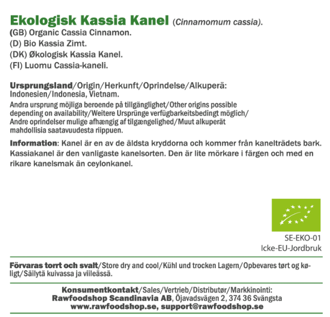 Meidän ekologinen kanelijauhe tulee kassiakanelista ja kanelipuun kuoresta. Kanelijauheessa on intensiivinen, lämmin maku, joka todella nostaa esiin sekä makeita että suolaisia ruokia. Tämä kassiakaneli on hieman tummempi väriltään verrattuna miedompaan Ceylon-varianttiin ja arvostetaan erityisesti sen intensiivisestä maustaan. Täydellinen valinta sinulle, joka haluat tuoda lisää makua esimerkiksi aamupuuroon, mysliin tai kotitekoiseen leipään. Mutta kassiakaneli ei jää vain aamiaislautaselle, sillä se on myös itsestään selvä osa ruoanlaittoa. Tämä kaneli on yleinen ainesosa intialaisissa resepteissä, mausteisissa pataruoissa ja lämpimissä vegaaniruokissa, joissa sen syvä maku pääsee oikeuksiinsa. Kassiakaneli on myös suosittu ainesosa perinteisissä mausteseoksissa, joita käytetään aasialaisessa keittiössä.