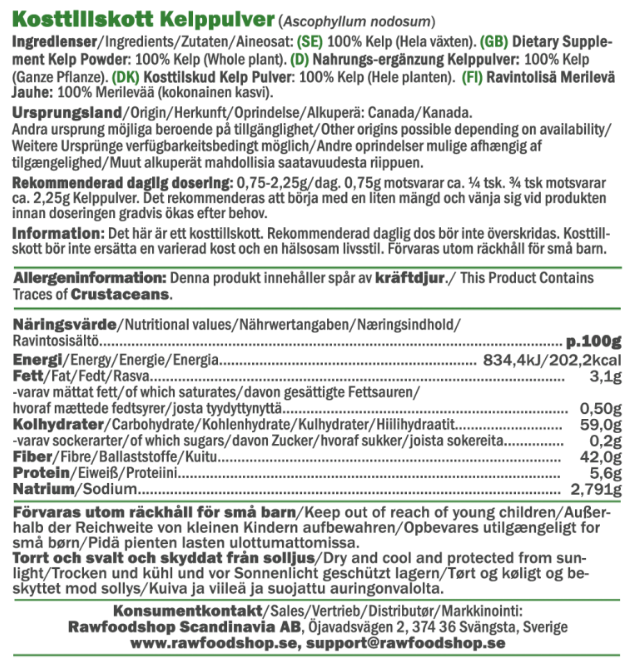 Kelp on ruskealevä, jota on käytetty ruoanlaitossa ympäri maailmaa jo pitkään – erityisesti aasialaisessa keittiössä. Tämä kelp-jauhe tuo merellisen aromin helposti osaksi arkiruokia. Sen luonnollisesti suolainen ja aromaattinen maku antaa annoksille syvyyttä ja sopii täydellisesti niin salaatteihin, keittoihin, lämpimiin patoihin kuin marinadeihin. Ripottele jauhetta valmiin annoksen päälle tai sekoita suoraan ruokaan kypsennyksen aikana – näin saat lisää makua vaivattomasti. Kelp on meressä kasvava, mineraalipitoinen ruskealevä, jota arvostetaan erityisesti kasvipohjaisessa ruoanlaitossa sen ravinteikkuuden ja täyteläisen maun ansiosta.