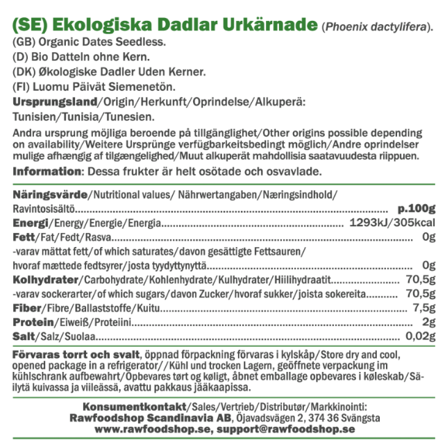 Kivettömät taatelimme ovat täydellinen ainesosa sinulle, joka rakastat leipoa vegaanisesti tai haluat vain luonnollisen makeutusaineen ruoanlaittoosi. Nämä luomutaatelit on hellävaraisesti kuivattu, jotta niiden herkullinen ja maukas luonne säilyisi. Ne ovat täysin vegaanisia, raakakuivattuja ja tulevat kätevässä 1 kg:n pakkauksessa, valmiina rikastuttamaan kulinaarisia luomuksiasi - täytä varastosi kunnolla jo tänään bigpackilla!