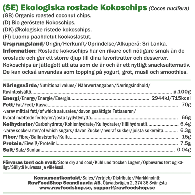 Kookoslastumme ovat sertifioitu EU Organic -standardin mukaisesti, mikä takaa, että ne tuotetaan ilman synteettisiä torjunta-aineita ja kestävissä olosuhteissa. Kun valitset kookoslastumme, et saa vain tuotteen, joka maistuu upealta, vaan myös ympäristöystävällisen vaihtoehdon, joka on hyvä sekä sinulle että planeetalle. Riippumatta siitä, teetkö vegaaniruokaa, leivotko gluteenitonta tai haluatko vain lisätä ylimääräistä rapeutta ruokiisi, paahdetut kookoslastumme ovat täydellinen valinta.