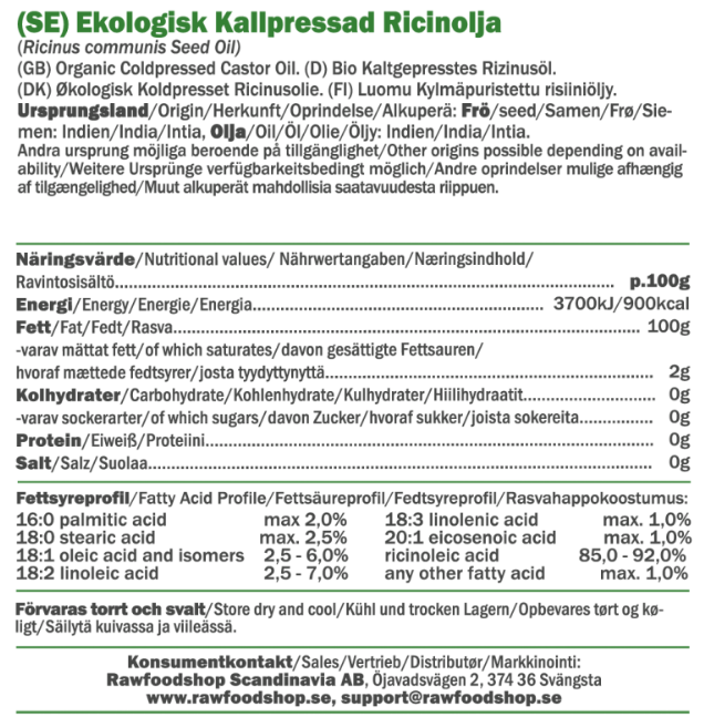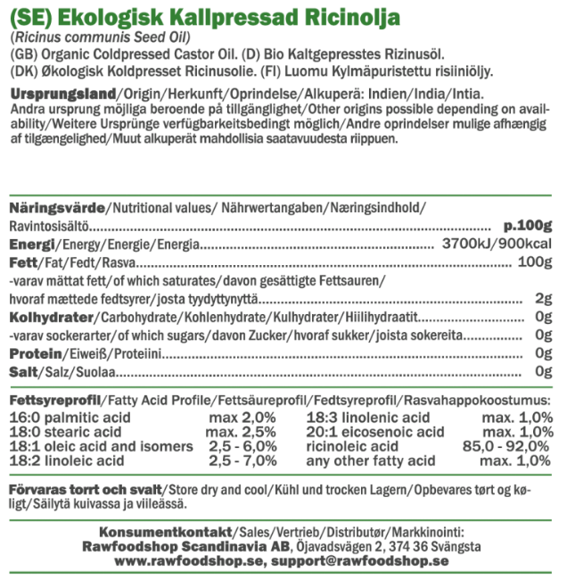 Risiiniöljy on luonnonkosmetiikan klassikko – se tunnetaan ainutlaatuisesta koostumuksestaan ja täyteläisestä, hieman tahmeasta rakenteestaan. Kylmäpuristettu luomuversio valmistetaan hellävaraisesti, jotta kaikki öljyn luonnolliset ominaisuudet säilyvät. Paksu ja hitaasti imeytyvä koostumus tekee risiiniöljystä täydellisen esimerkiksi hierontaöljyihin ja puhdistustuotteisiin, joissa halutaan työstää öljyä rauhassa. Sitä voi myös sekoittaa muihin kasviöljyihin halutun koostumuksen ja käyttötarkoituksen mukaan – täydellinen valinta itse tehtyihin ihonhoitotuotteisiin.