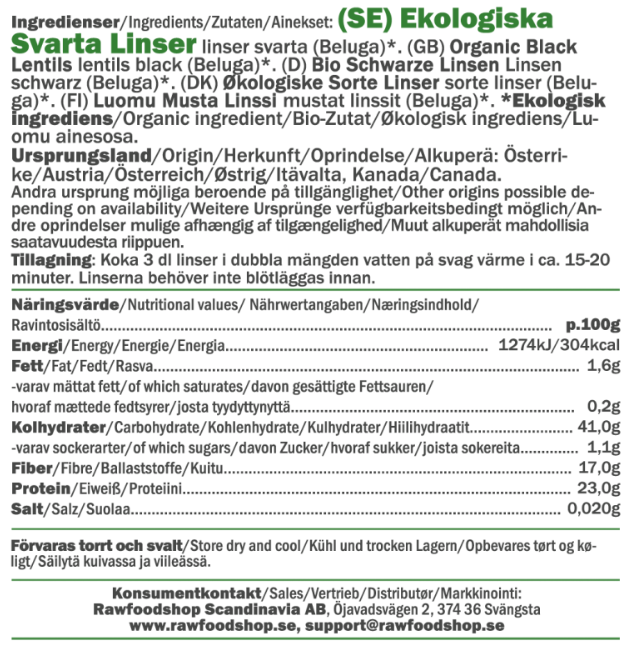 Haluatko valmistaa enemmän vegaaniruokia tai vain monipuolistaa aterioitasi? Mustalinssit ovat loistava valinta. Ne imevät itseensä makuja erinomaisesti ja sopivat kaikkeen lämpimistä padoista raikkaisiin salaatteihin. Kokeile yhdistää niitä paahdettujen kasvisten, mausteisten kastikkeiden tai kylmän sitruksisen ja yrttisen salaatin kanssa. Luomumustalinssimme ovat luomuviljeltyjä ja täysin lisäaineettomia – luonnollinen ja maukas valinta kaikille hyvän ruoan ystäville.