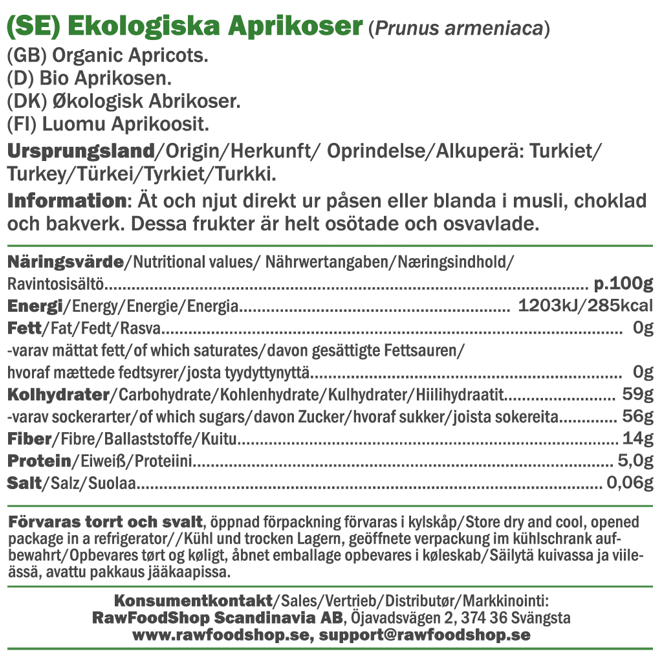 Meidän kuivatut aprikoosit ovat huolella valittuja ja tulevat Itä-Turkista, missä ne saavat kypsyä auringon lämpimissä säteissä. Hedelmiä korjataan huolellisesti, poistetaan siemenet käsin ja kuivataan pellavapyyhkeillä, mikä säilyttää niiden luonnollisen makeuden ja maun. Koska aprikoosimme ovat rikkiä vapaata, niillä on ruskeampi väri – merkki niiden luonnollisuudesta ja korkeasta laadusta. Ne ovat luomua ja raakakuivattuja, mikä tarkoittaa, että ne sopivat erinomaisesti rawfood-elämäntapaan ja vegaanisiin ruokiin.