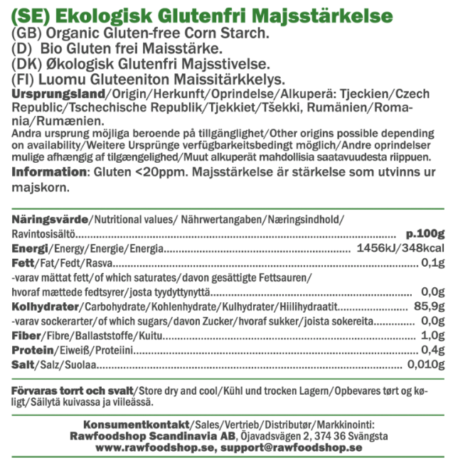 Maissitärkkelys LUOMU on luonnollinen ja luomulaatuinen tärkkelys, joka on valmistettu maissinjyvistä. Se on keittiössä korvaamaton apu, kun haluat saavuttaa sileän ja täydellisen koostumuksen kastikkeissa, keitoissa, vanukkaissa ja leivonnaisissa. Neutraalin makunsa ja hienon, valkoisen rakenteensa ansiosta se sopii erinomaisesti suurustamiseen sekä kylmissä että lämpimissä ruoissa. Toisin kuin maissijauho, joka sisältää koko maissinjyvän ja on väriltään keltaista, maissitärkkelys koostuu vain tärkkelyksestä – mikä tekee siitä täysin valkoista ja tehokkaampaa sakeuttamisessa.