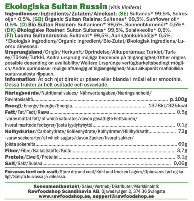 Luomu sulttaanirusinamme ovat täydellinen valinta sinulle, joka etsit luonnollista ja maukasta välipalaa ilman turhia lisäaineita. Nämä pienet, kullanruskeat kuivatut viinirypäleet ovat sekä siemenettömiä että luonnostaan makeita, mikä tekee niistä kätevän vaihtoehdon niin ruoanlaittoon kuin leivontaan. Sulttaanirusinat ovat erinomainen lisä aamumysliin tai nopeaksi välipalaksi suoraan pussista. Koska ne ovat täysin sokeroimattomia ja rikittömiä, saat aidon ja puhtaan makuelämyksen. Miedon ja makean makunsa ansiosta sulttaanirusinat sopivat myös erinomaisesti leivonnaisiin, kuten kaurarusinakakkuihin, tai rustiikkisiin aamiaisleipiin, kuten aprikoosi-rusinaleipään.