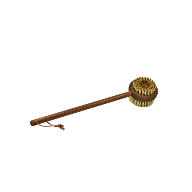 Tee koko kehon harjaamisesta helppoa tällä saarnipuusta valmistetulla selkäharjalla – täydellinen sekä kuivaharjaukseen että märkäharjaukseen. Harjassa on kaksi puolta: pehmeämmät kuidut hellävaraisempaan hemmotteluun sekä jäykemmät harjakset tehokkaaseen puhdistukseen. Lämminsävyinen, suklaanruskeaksi käsitelty puu tekee harjasta kestävän ja luonnollisen osan päivittäistä ihonhoitorutiiniasi.