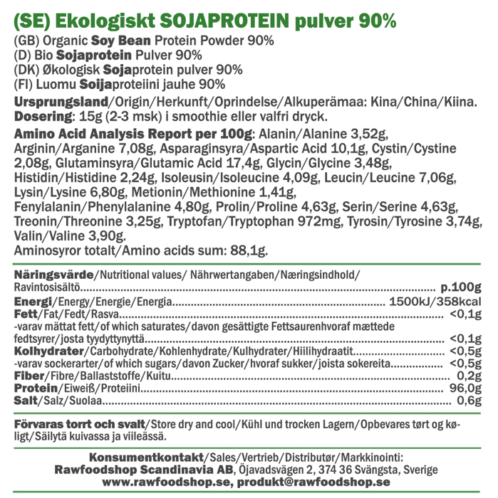 Etsitkö kasvipohjaista proteiinijauhetta luonnon omasta varastosta? Soijaproteiini 90% LUOMU on erinomainen valinta sinulle, joka haluat vegaanisen proteiinijauheen neutraalilla maulla. Tämä proteiinijauhe on valmistettu luomu- ja GMO-vapaista soijapavuista, mikä tekee siitä luonnollisen ja kestävän vaihtoehdon. Tuotteen raaka-aine on korkealaatuista, ja proteiinijauhe sopii erinomaisesti ruoanlaittoon ja leivontaan, jos haluat sisällyttää soijaproteiinia ruokavalioosi.