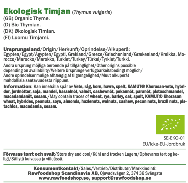 Luomu kuivattu timjami säilyy pitkään ja pitää arominsa, joten se on luonteva valinta jokaisen keittiön perusmausteeksi. Se tarjoaa luonnollisen ja kestävän tavan korostaa makuja ruoassa. Tämä yrtti sopii erityisen hyvin kasvisruokiin, pastakastikkeisiin ja rustiikkisiin keittoihin. Jos haluat kokata puhtailla Välimeren mauilla, tämä timjami on juuri oikea valinta. Maukasta, vastuullista ja aina valmiina rikastuttamaan luovimpia reseptejäsi – arjesta juhlaan.