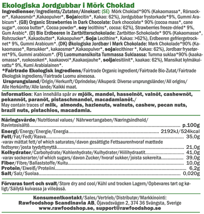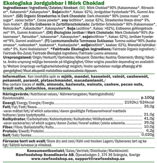 Luomumansikkamme tummassa suklaassa ovat täydellinen yhdistelmä hapokkaita pakastekuivattuja mansikoita ja täyteläistä, maukasta suklaata. Jokainen pala on huolellisesti päällystetty tarjoten makuelämyksen, joka sekä yllättää että lumoaa. Tämä herkullinen tuote sopii erinomaisesti kaikille, jotka haluavat nauttia jotain erityisen hyvää – arkeen ja juhlaan.