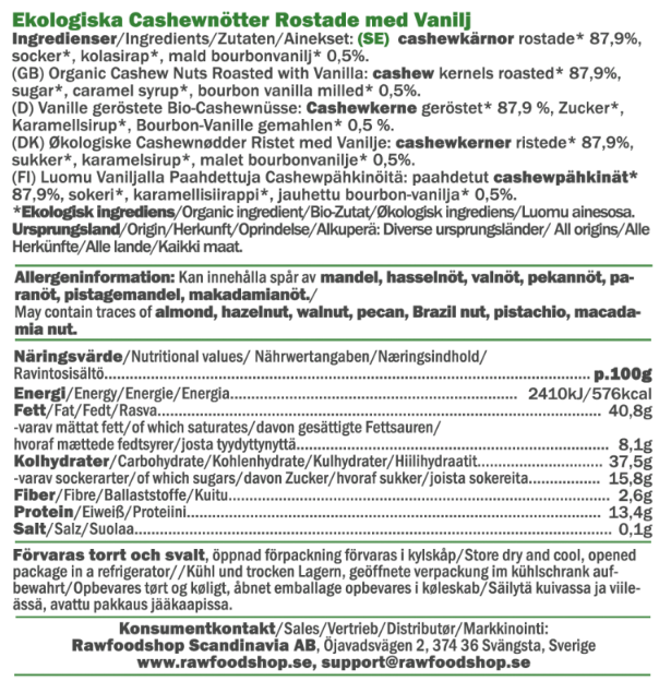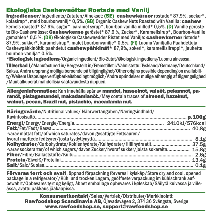 Cashewpähkinämme on maustettu aidolla Bourbonvaniljalla, joka on yksi maailman arvostetuimmista vaniljalajikkeista. Madagaskarilla viljelty Bourbonvanilja tunnetaan rikkaasta, kermaisesta maustaan ja intensiivisestä tuoksustaan. Tämä vaniljalajike tuo pähkinöihin ylellistä makeutta, joka nostaa makuelämyksen täysin uudelle tasolle. Vaniljan syvä aromi, kinuskin ihana makeus ja pähkinöiden rapeus luovat unohtumattoman maun, johon haluat palata yhä uudelleen.